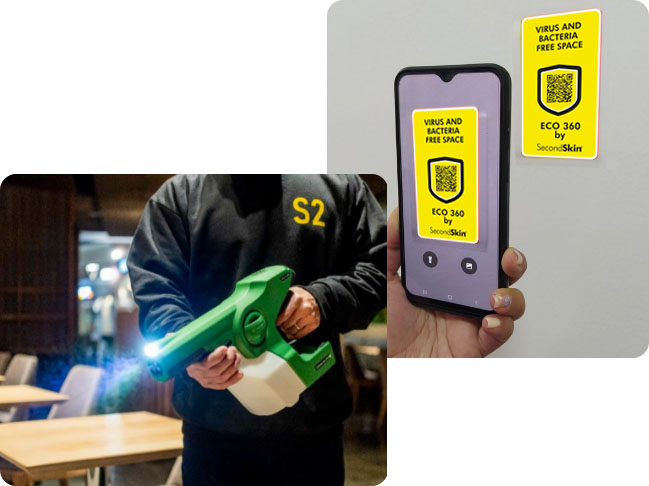 Designed especially for our customers committed to Sustainable Hygiene, it not only allows you to use sustainable disinfection, cleaning and deodorization technologies, but also to certify them through a rigorous Second Skin monitoring program, with traceability communicable with QR code.